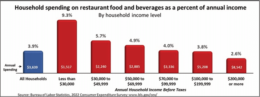 Increasing the meals tax also disproportionately impacts lower-income residents since those households spend the largest portion of their income on restaurant food and beverages, the Association states.