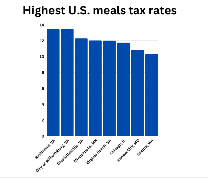 Cities in Virginia already have some of the highest meals taxes in the United States, and now Williamsburg stands notably at the top of the pack.