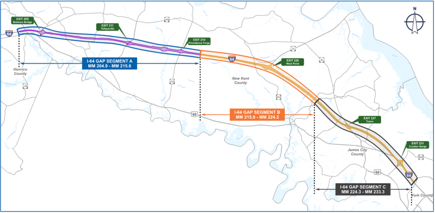 - “The I-64 corridor serves as a key connector between Richmond, Henrico, Hanover, New Kent, Hampton Roads, and James City counties,” said Secretary of Transportation Shep Miller. “Connecting the Central Virginia and Hampton Roads regions is critical to growing Virginia’s economy, and safety is an important component as well. The I-64 Gap Project will improve traffic flow and operations, including strengthening our emergency evacuation routes and ensuring our communities have a lifeline to safety