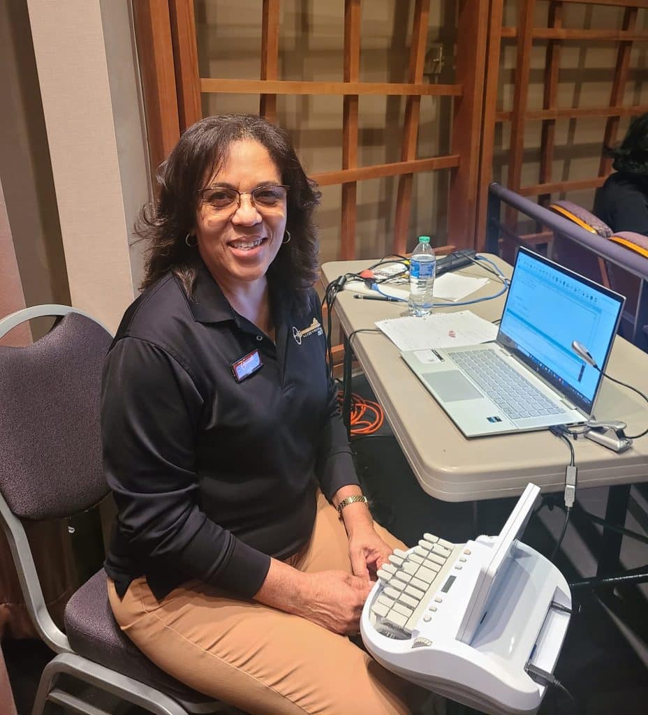 At the time, however, no local theaters offered captioning. It took a collaborative effort between the two women to persuade Chrysler Hall in Norfolk to allow Boyle to provide live captions using a stenograph laptop during a performance of The Lion King.